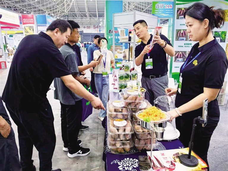 种子“双交会”现场,来自山东的甘薯种企正在线上线下同步推介种子。