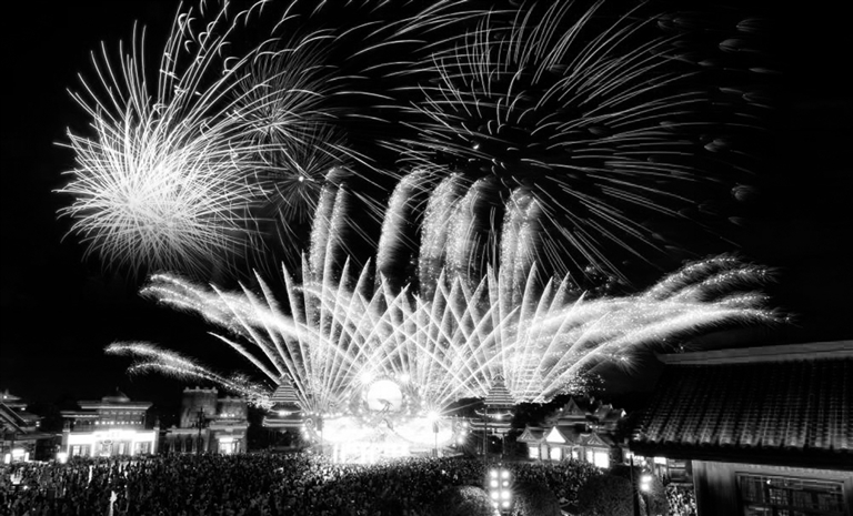 国庆中秋假期,荆州方特东方神画主题乐园举办烟火秀。 新华社发