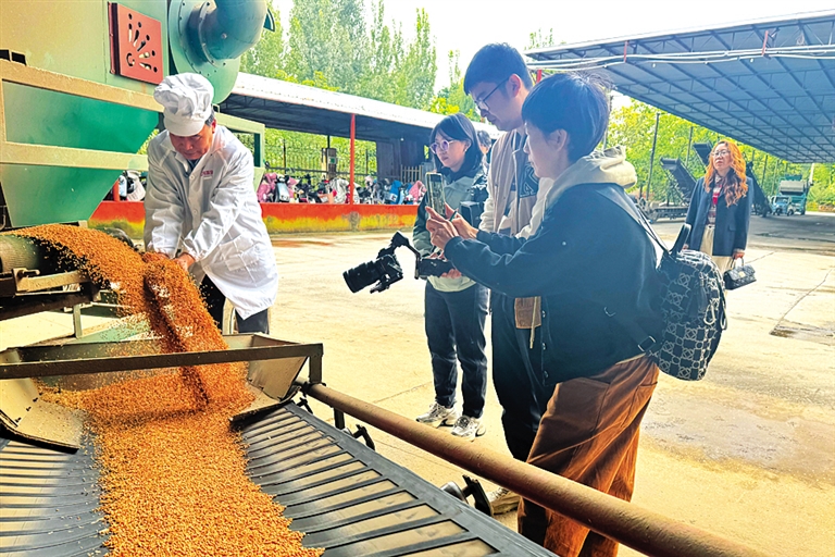 ▲采访团在河北龙河面业有限公司进行采访。 保定晚报记者 张洁 摄