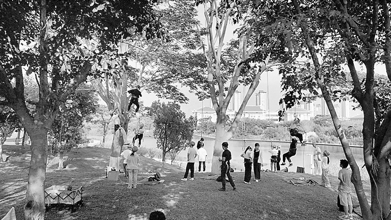 攀树课不仅考验学生的心理素质,也促进团队之间的信任与合作。郑达雄在教学过程中发现,这门课程的意义早已超越了体育本身。“我并未将它视为单纯的体育课,因为这项运动与自然连接,能够激发学生的社会责任感。”