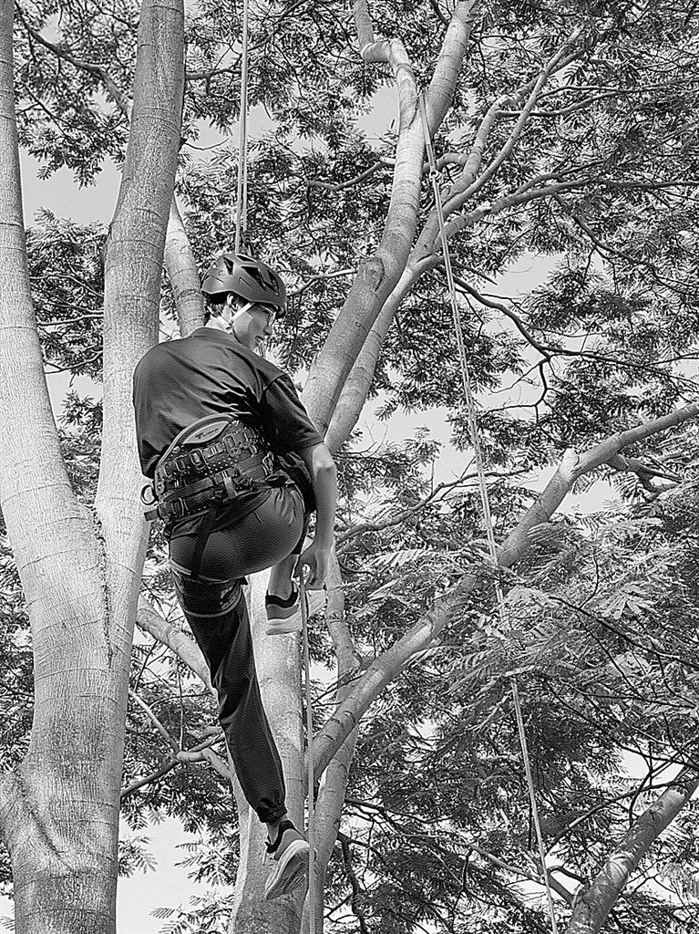 郑达雄介绍:“攀树师不仅要熟练使用各类攀树装备与器械,还需了解树木养护、病虫害防治等树木学知识。同时,良好的运动能力和体力也是重要的职业素质。”