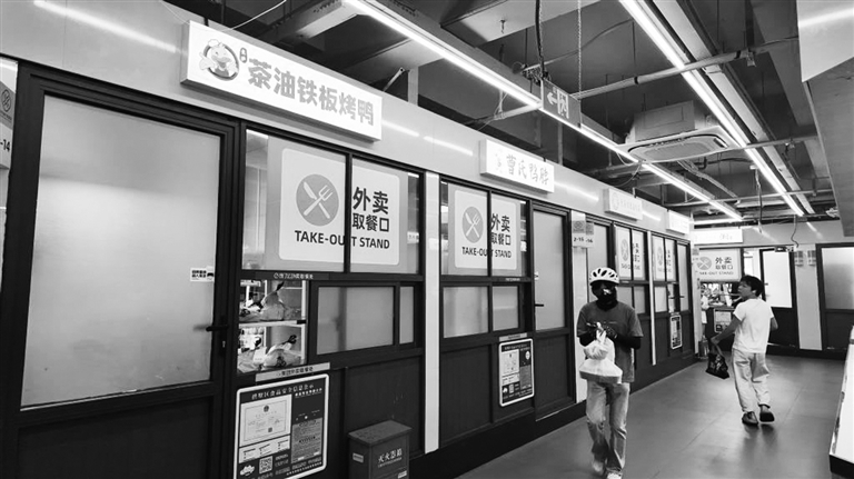 在部分地区,无堂食外卖聚集在商场、农贸市场的地下楼层,由于不通风、设施简陋、天气闷热,一些男性经营者上身赤膊、汗流浃背地制作外卖。