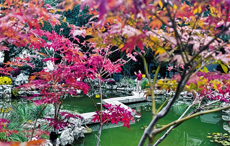 古城的秋意,在竞秀公园的一池碧水边,被菊色点燃。值此第26届金秋菊展,红、黄、紫各色秋菊,如打翻的调色盘,在竞秀书院的白墙黛瓦间恣意流淌,绘就一幅灵动的长卷。人行画中,步履牵起暗香;花映人面,秋光融入笑颜。这暗香与疏影,共同谱写了十月保定最美的诗篇。