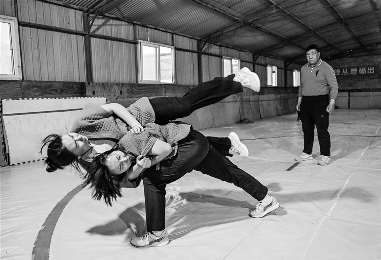 功夫不负有心人,在白鹤江的指导与关爱下,孩子们进步飞速。2023年,16岁的郭宇航登上中国式摔跤全国青年锦标赛第三名的领奖台,获得申请国家二级运动员资格,这个曾经白胖松软的“小胖墩”在两年训练后变得刚劲矫健。还有更多故事在这片土操场上生根:不爱说话的刘雨莫变得活泼开朗,家境贫寒的张雅丽通过选拔进入河北省女子柔道队,8岁的孙晨珺取得2024年河北省青少年中国式摔跤锦标赛亚军……