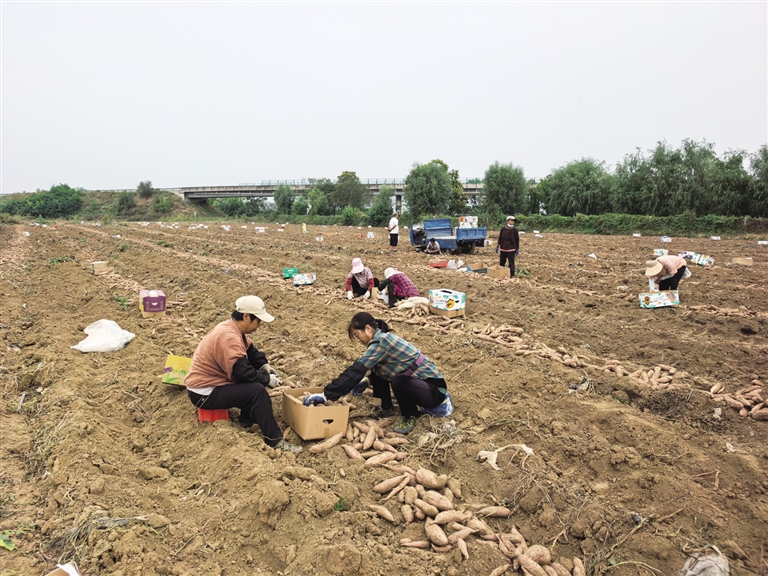 10月14日,在易县高陌镇杨威城村的红薯地里,拖拉机轰鸣声不断,一垄垄粉嫩的红薯破土而出。村民们紧随其后,麻利地抖落泥土、仔细分拣,将红薯整齐装箱。