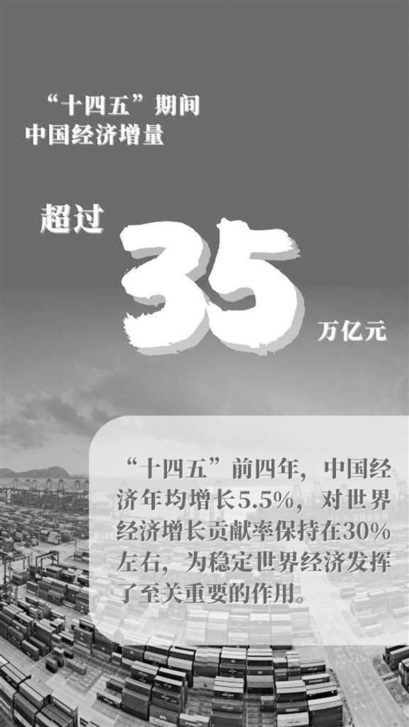 “十四五”期间,中国经济增量预计超过35万亿元,相当于再造一个“长三角”。2021年至2024年,中国经济年均增长5.5%,年均增速明显高于全球平均水平,对世界经济增长贡献率保持在30%左右,为稳定世界经济发挥了至关重要的作用。