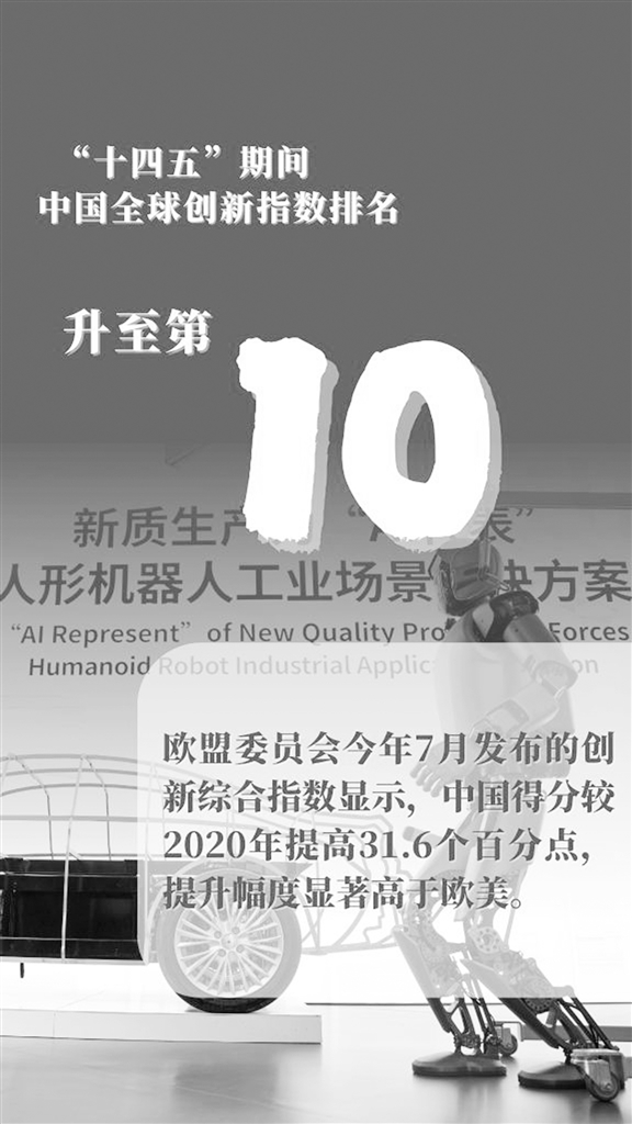 中国是全球创新力提升最快的经济体之一,全球创新指数排名从2012年的第34位升至2025年的第10位。欧盟委员会今年7月发布的创新综合指数显示,中国得分较2020年提高31.6个百分点,提升幅度显著高于欧美。