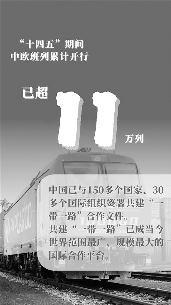 莱茵河畔的杜伊斯堡,货轮排队停靠,火车鸣笛驶入场站,卡车搭载着印有“渝新欧”“义新欧”等字样的集装箱往来奔驰……中欧班列开行让这座历史悠久的港口活力满满。中欧班列累计开行已超11万列,成为高质量共建“一带一路”的生动例证。