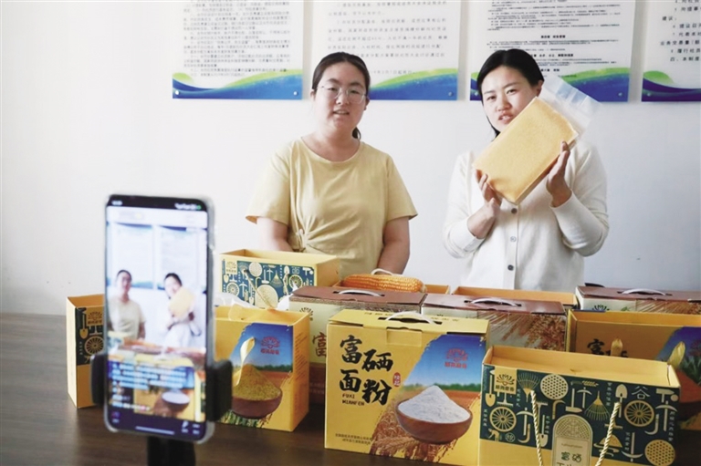 深秋的冀中平原,丰收的喧嚣归于沉静,沃野积蓄着来年的希望。走进顺平县万源家庭农场富硒农产品展厅,富硒玉米糁、富硒小米、富硒面粉等各类农产品整齐摆满展架,谷物的清香扑面而来。展厅中央的直播台前,助农主播边旭英手中拿着一款玉米糁,正面对直播镜头侃侃而谈:“硒元素对人体益处多多,咱这玉米糁产自国家认证富硒土地,煮熟后满屋飘香,口感糯而不腻……”