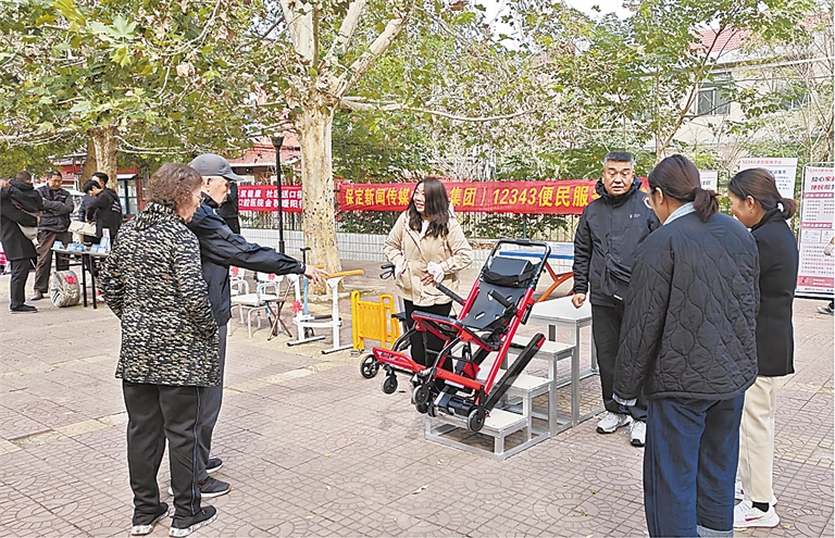 活动现场还设置了适老化产品展示区,爬楼机、助行椅、沐浴椅等产品吸引了不少居民驻足体验。工作人员详细介绍产品功能,并邀请大家试用。居民王先生体验后感慨道:“这些设计非常人性化,很适合老年人使用。”