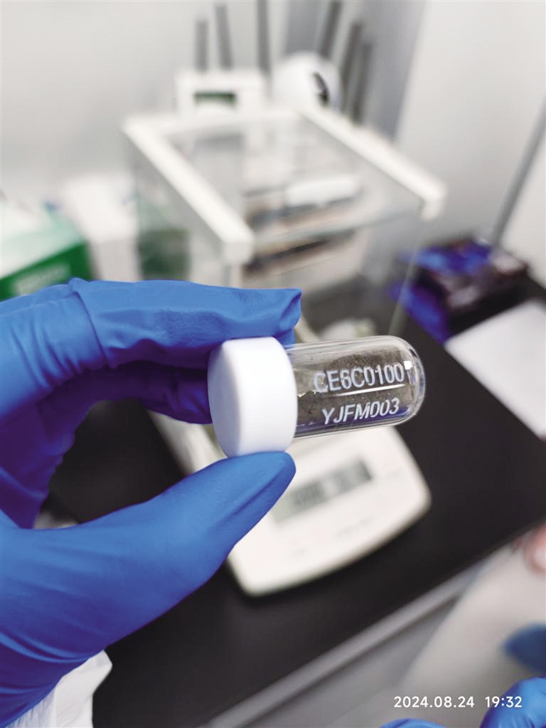 图为在中国科学院广州地球化学研究所实验室内拍摄的月壤样品。 (中国科学院广州地球化学研究所供图)