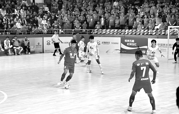 比赛开场即进入“保定节奏”,不到20秒,保定队员李广慧便抓住对手失误完成抢断破门,用一粒“闪电进球”为球队拔得头筹。第6分钟,侯俐勇门前包抄,接队友刘春龙的精准传球完成补射,将比分扩大至2:0。第11分钟,邸佑送出精准界外球,马宇禁区内头球攻门命中,帮助保定队以3:0的优势结束第一节。