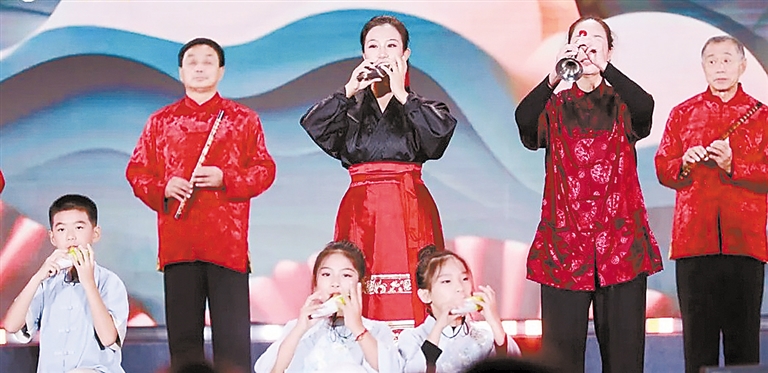 ◀作为全国青少年美育示范基地,唐县第一小学始终以“五育并举”为核心,打造陶笛、戏曲、合唱、绘画等多元社团,为学子搭建成长与展示的舞台。日前,唐县第一小学陶笛社团与戏曲社团受邀登台“光影同行・唐县有约——2025年中国农民丰收节乡村电影周荣耀盛典”,用精彩表演展现昂扬风采。图为在非物质文化遗产节目《泥韵丝吟》中,该校陶笛社团以清澈悠扬的陶笛声拉开节目序幕。 张华 报道