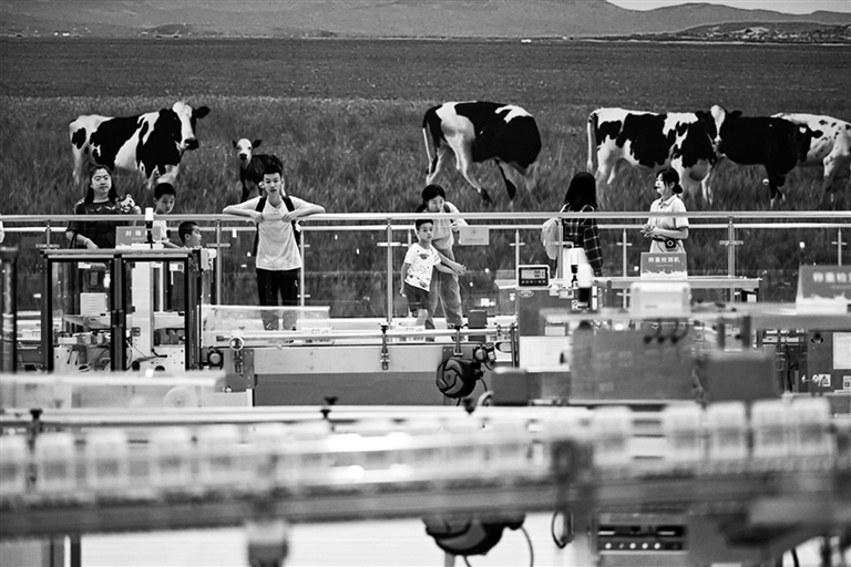 2025年7月28日,游客在呼和浩特市伊利现代智慧健康谷液态奶全球智造标杆基地参观。 新华社记者 李志鹏 摄