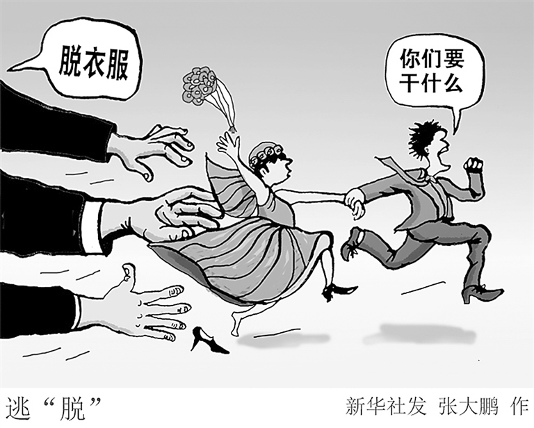 社交媒体上,有不少网友发文“吐槽”,婚闹越来越像恶作剧,让人深感不适。