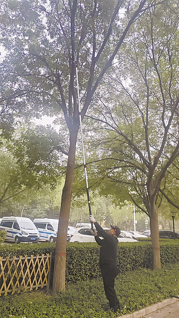 近日,在府河公园内,工作人员修剪整治园内树木枯枝。“他们及时移除松动、腐朽的枝条,从源头防范枯枝掉落伤人风险,让大家能安心畅享游园时光,为他们的细心负责点赞。”游玩的市民称赞道。 刘让 摄