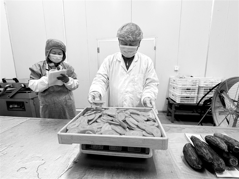 高碑店市豆想你食品有限公司的研发室内,肖海杰与助手一道,研制新品果蔬豆腐丝。 王娟 摄