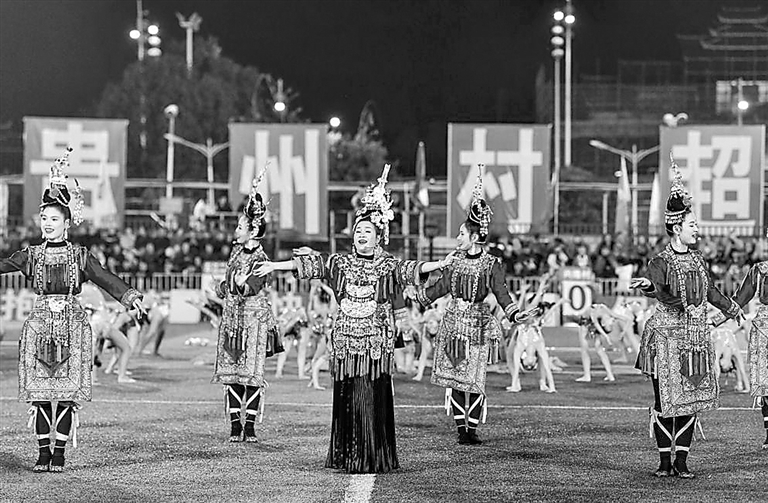 演员在2025年贵州“村超”比赛间隙表演侗族大歌。 新华社记者 杨文斌 摄