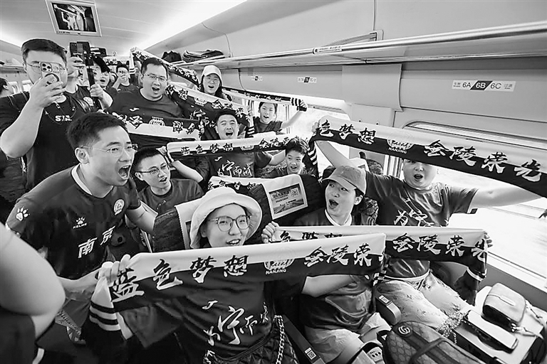 铁路部门开行南京站往返淮安东站的长三角首趟“苏超”球迷高铁专列。 新华社发(苏阳 摄)