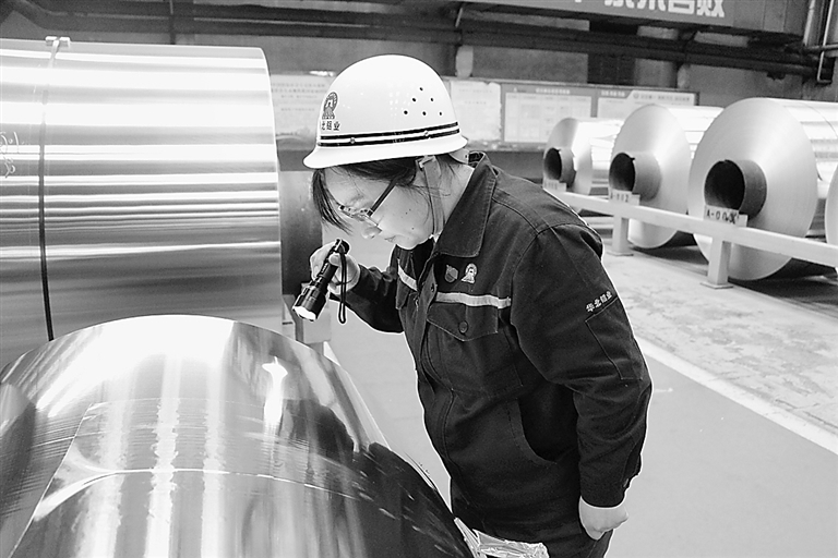 11月18日,华北铝业有限公司研发工程师温倩一如既往忙碌在车间,跟踪试验刚刚生产出的铝卷。观察、取样、进一步内部组织检测分析、记录——这是她与电池箔较量的第16个年头。