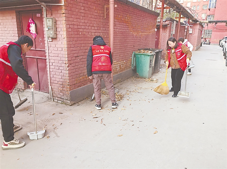 11月27日,竞秀区话剧院社区组织志愿者到房管宿舍开展落叶清扫专项志愿服务活动,改善小区环境卫生。此次活动不仅美化了小区环境、消除了安全隐患,更凝聚起志愿服务力量,传递了文明共建的正能量。社区将持续关注辖区环境动态,常态化开展各类志愿服务活动,同时呼吁更多居民积极参与到社区治理中来。 马玉铃 摄