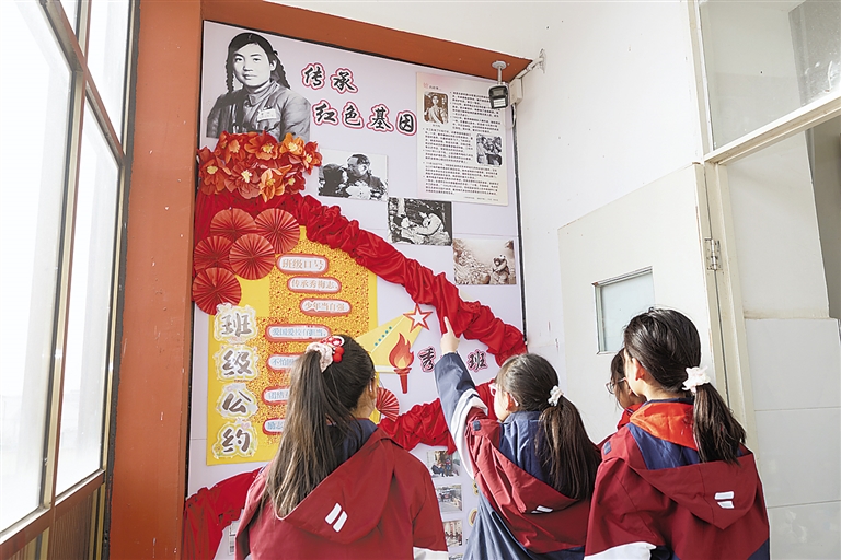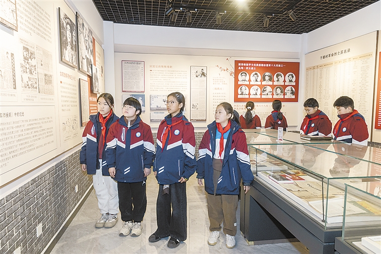 解秀梅小学学生在解秀梅纪念馆参观。