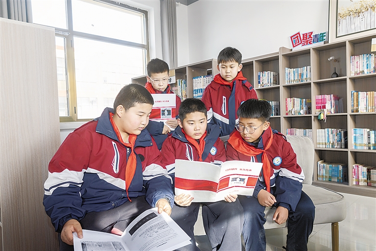 孩子们在图书室阅读解秀梅红色校本。