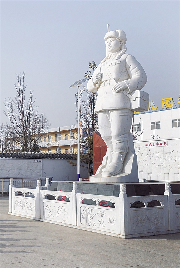 高阳县于堤村解秀梅广场的汉白玉雕像。