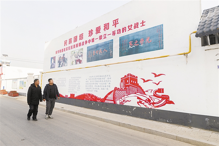 于堤村村民观看解秀梅红色主题文化墙。
