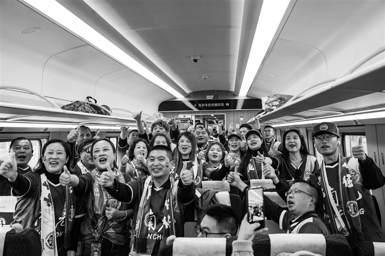 11月8日,“川超专列”C4074次列车载着约1200名球迷从南充奔赴达州。(中国铁路成都局集团有限公司供图)