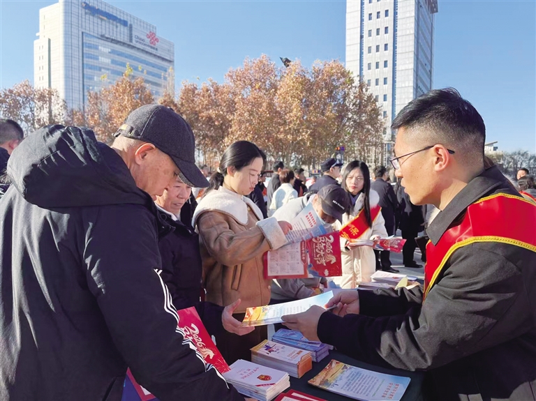 各展台前气氛热烈,前来咨询和领取资料的市民络绎不绝。“工作人员把宪法和养老保障政策讲得明明白白,这趟没白来!”市民陈晓说。在现场开展宣传的竞秀区公安分局民警张英迈说:“我们利用宪法宣传日,多警种联动,既向群众普及反诈、禁毒、交通等法律知识,也通过面对面交流了解大家的法律需求,让市民感受到公安既是执法者,也是服务者。”