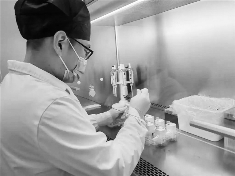 浙江省人民医院检验中心工作人员在做呼吸道病原体核酸样本检测。 受访者供图