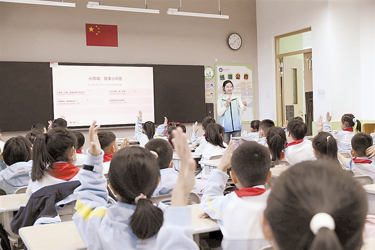 ▶日前,华北电力大学(保定)青年志愿者协会的14名志愿者走进保定小学,开展“共筑防疫长城,守护美好童年”志愿活动。围绕“结核防治”与“传染病预防”,青年志愿者们进行科普讲解与互动问答,并带领同学们绘制“健康口罩”,开展“神笔马良”共创游戏,以多彩的方式让同学们体会防疫的重要性。
