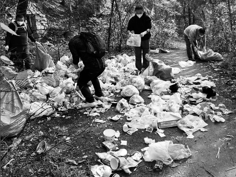近两年,陕西西安的徒步爱好者黄先生每周都会组织6到8名户外爱好者到秦岭各个“野山头”捡垃圾2至3次,每次能捡回约200斤垃圾,“都是徒步爬山的人丢的”。