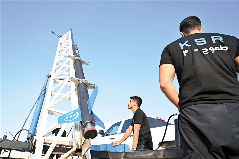 12月6日,在科威特杰赫拉省,科威特航天火箭团队为发射做准备。