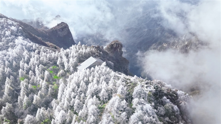 白石山的冬日奇景成为涞源冬季游的“流量密码”。前不久的降雪让白石山银装素裹,雾凇美景刷爆朋友圈。 涞源县委宣传部 供图