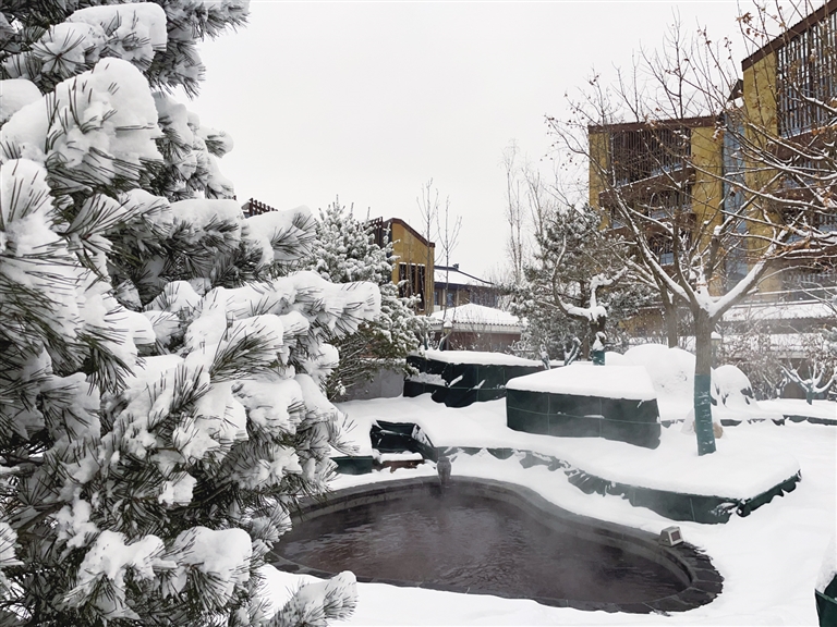 华中温泉康养小镇室外雪景温泉一角。 涞源县委宣传部供图