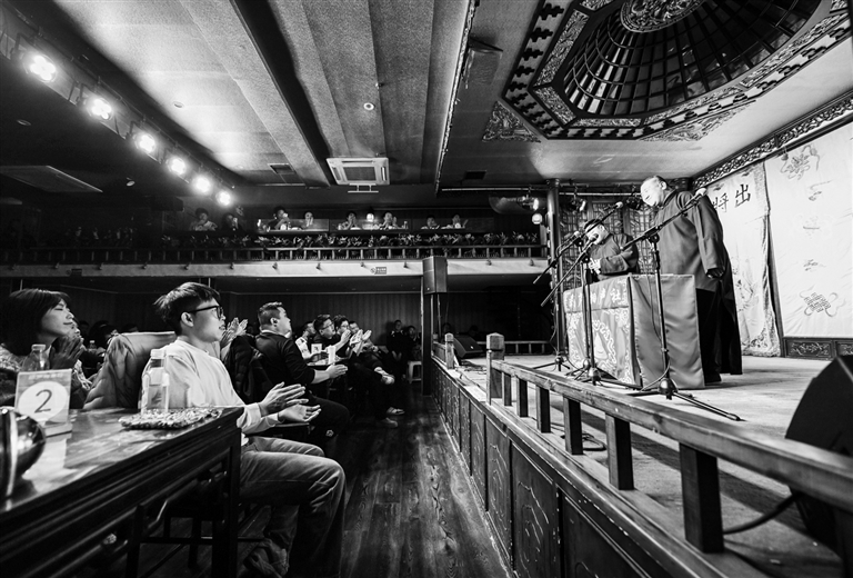 近日,观众在天津葫芦相声社观看相声表演。冬日里,天津相声小剧场内暖意融融,台上妙语连珠,台下掌声迭起,传统曲艺为市民冬日文化生活增添一抹亮色。据了解,天津目前有40多家相声演出场所,既有开在古街里的老牌茶馆,也有位于商场、公园的新生剧场,吸引着八方来客。 新华社记者 赵子硕 摄