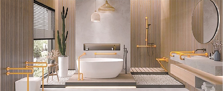 胡姐接着说:“老人一般眼神不太好,扶手颜色最好选明黄、橙红这样高对比度的亮色,在晚上或光线暗的走廊、厕所,一眼就能看见,能避免抓空或者撞到。”