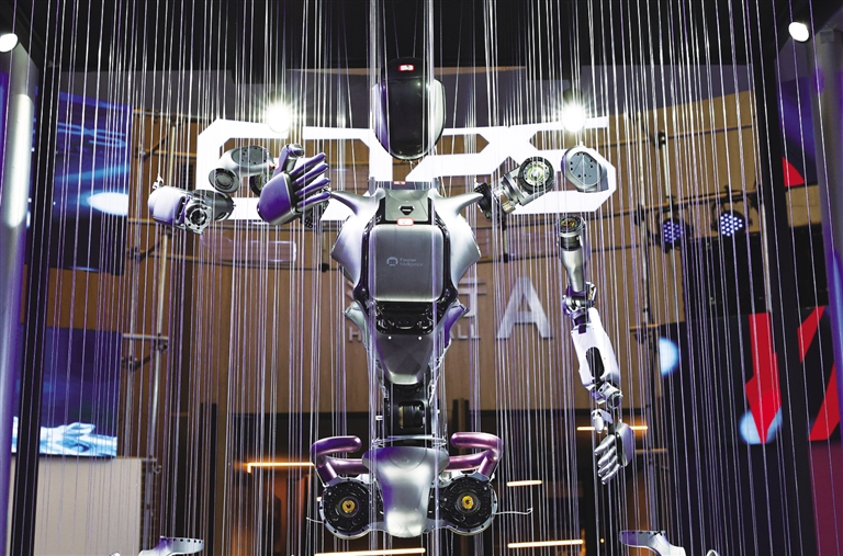 图为当日在活动现场拍摄的机器人展示装置。