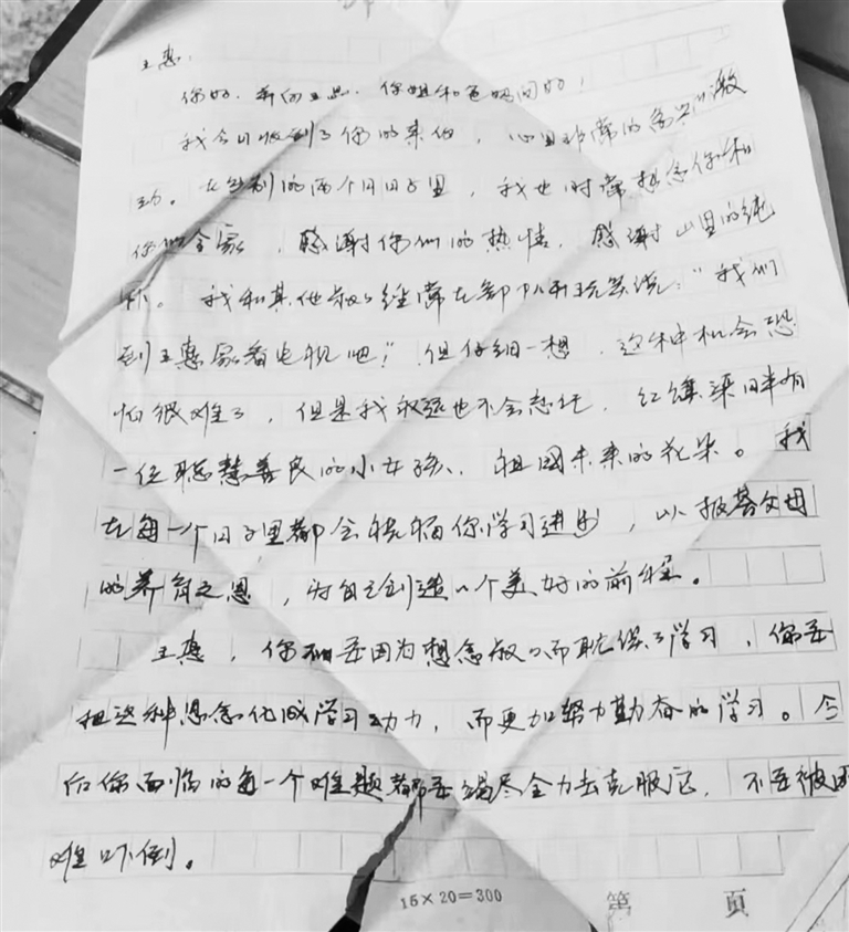 后来,我和解放军叔叔开始了书信来往。还记得第一次收到信件时的激动,那时我还不会写字,便由我口述,我爹帮我回信。这样通信了几次后,由于我爹太忙,没时间帮我执笔,我和叔叔们的联系也就慢慢中断了。