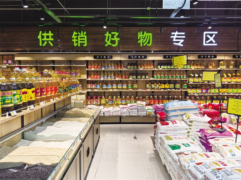 前端供销连锁超市的探索直指农村消费“最后一公里”的梗阻,通过集中采购、统一配送,使日用消费品价格较市场价降低5%—10%。同时,供销连锁超市适应农村日常生产、生活的需要,涵盖农资购买、农技咨询、快递代取、供销大食堂等12项便民功能,成为农村“一站式”服务枢纽。