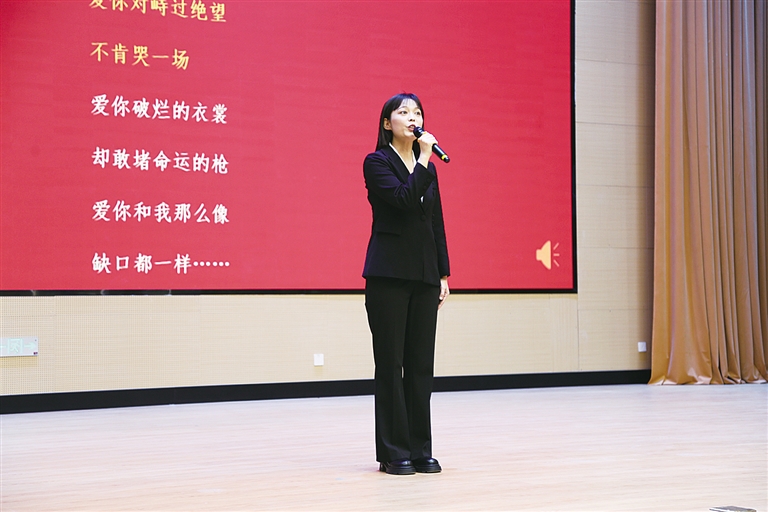 伴随着易县理论特派员关宏岩演唱的《与你在一起》(理论特派员之歌),宣讲正式开场,动人的旋律让正能量先声入耳、再入人心。定兴县陈晨以《百年风雨正青春 做新时代的孤勇者》为题,循着共产党人坚守初心、勇担使命的壮阔脉络,激励在场青年在新时代新征程书写不负韶华的青春答卷;高碑店市高博艺、刘晓芳带来诗歌朗诵《真理之花绽基层》,以诗意语言诠释“理论特派员”播撒思想火种的使命。