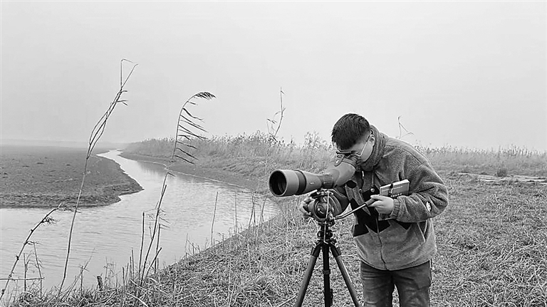 这是刘鹏在湖南西洞庭湖国家级自然保护区进行候鸟监测。