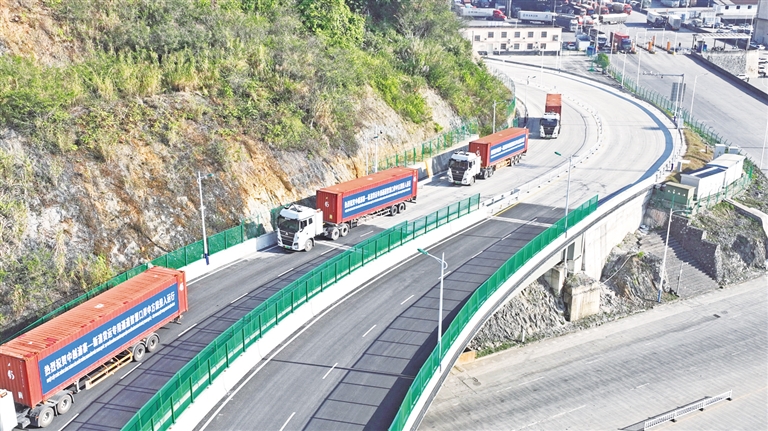 当日上午,随着6辆满载电子产品等货物的无人驾驶集装箱运输卡车从专用通道自动驾驶前往越南宝源货场,中越浦寨—新清货运专用通道智慧口岸中方段正式运行。