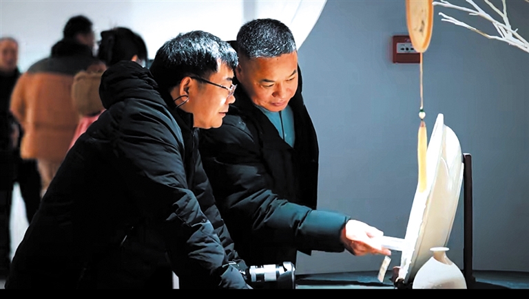 活动现场,白釉龙纹花口大盘、梅瓶、刻花长颈瓶等经典定瓷作品惊艳亮相,这些佳作出自多家定瓷企业。展厅内人头攒动,参展者或驻足观赏,拿手机定格器物之美;或轻触瓷面,细细感受定瓷独有的温润质感。