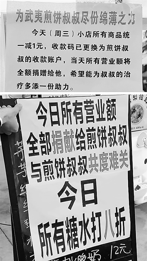 更令人动容的是,和张建武朝夕相处的“竞争对手”们也迅速行动起来,发出暖心回应。馄饨铺、糖水铺、养生茶铺、芋泥饼铺、海蛎饼铺……有人打折优惠,送小食、送糖水,有人悄悄换上“煎饼叔叔”张建武的收款码支援。整条街的摊主不约而同加入了这场爱的接力。