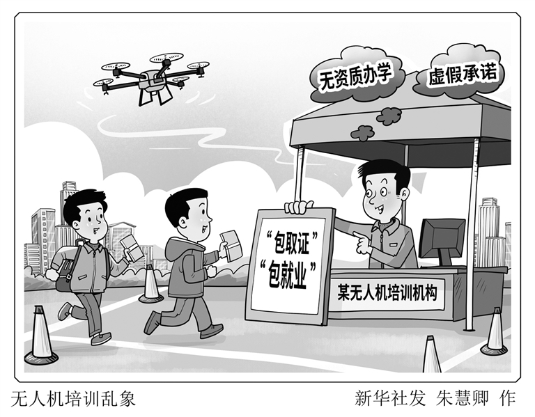 近年来,无人机培训异常火热,不少机构打出“包取证”“包就业”等噱头,抢占培训市场。