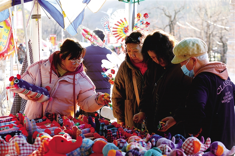 冬日里,满城柿子沟旅游路大集热闹开市。金黄的柿子和山货土产摆满摊位,传统布老虎等手工艺品琳琅满目,村民现场售卖,游客品尝选购。这场充满乡土气息的冬集,为寒冷季节增添温暖热闹的民俗风情。