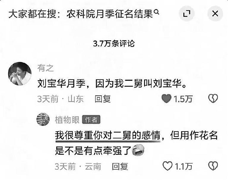 一朵凝聚科研心血的月季,以网友二舅的名字命名,背后既有大众对公共事务参与的热情,也有科研机构对民意的尊重。